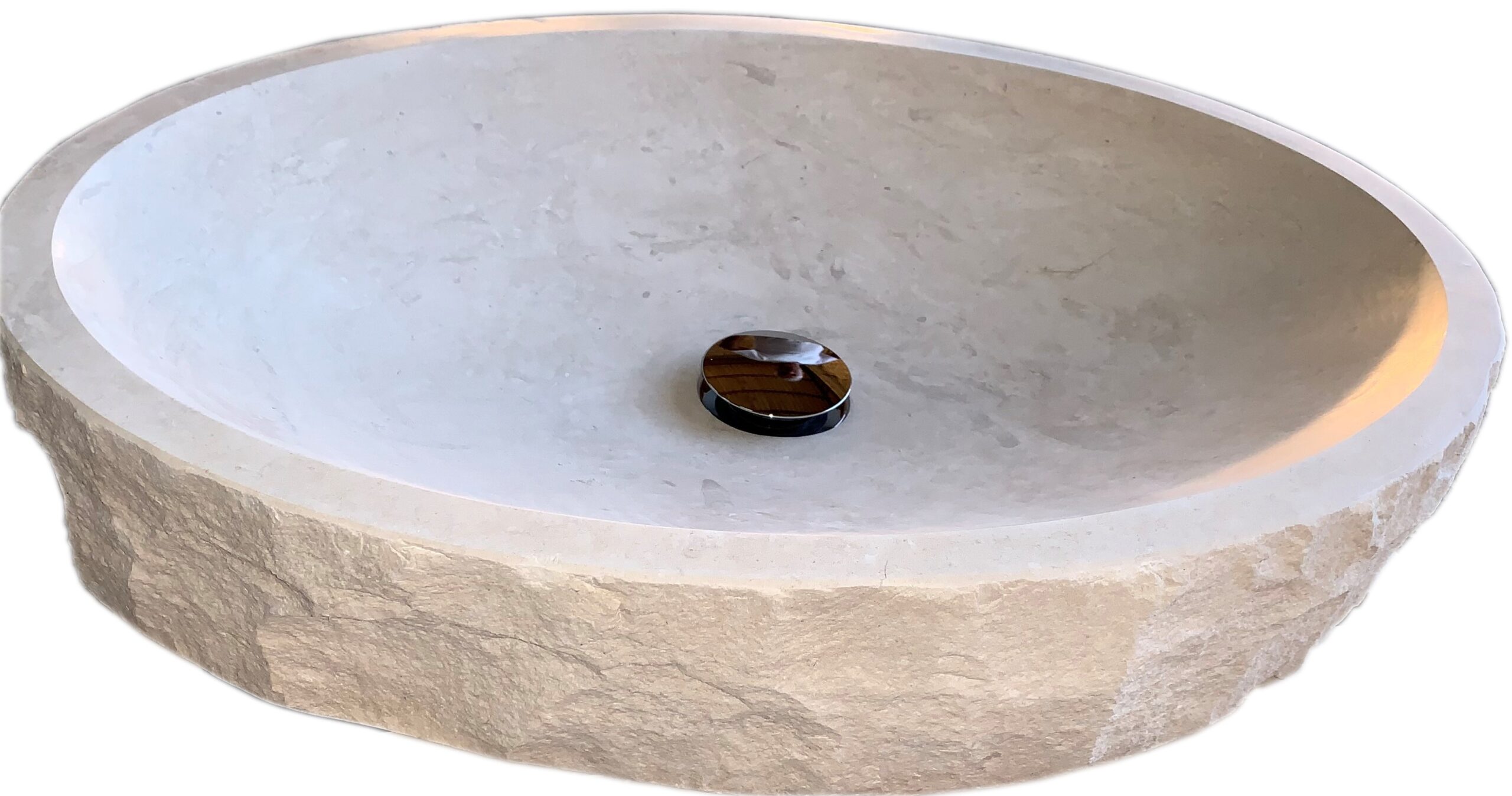 Lavandino ovale da appoggio in pietra adatto a qualsiasi stile di interno.